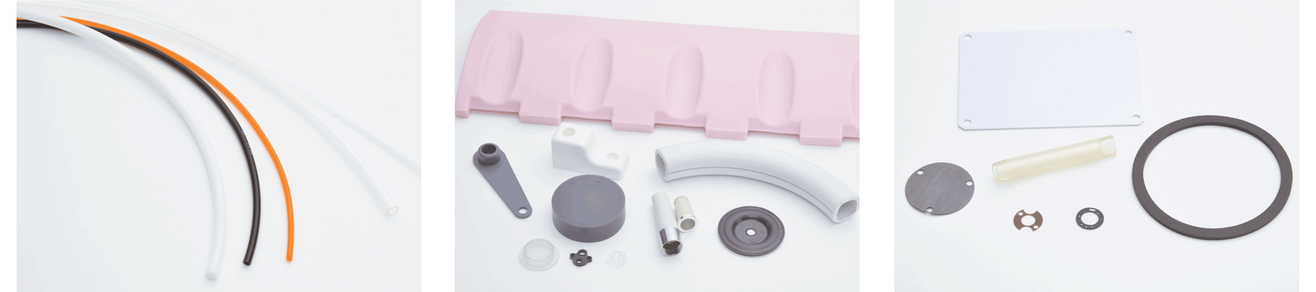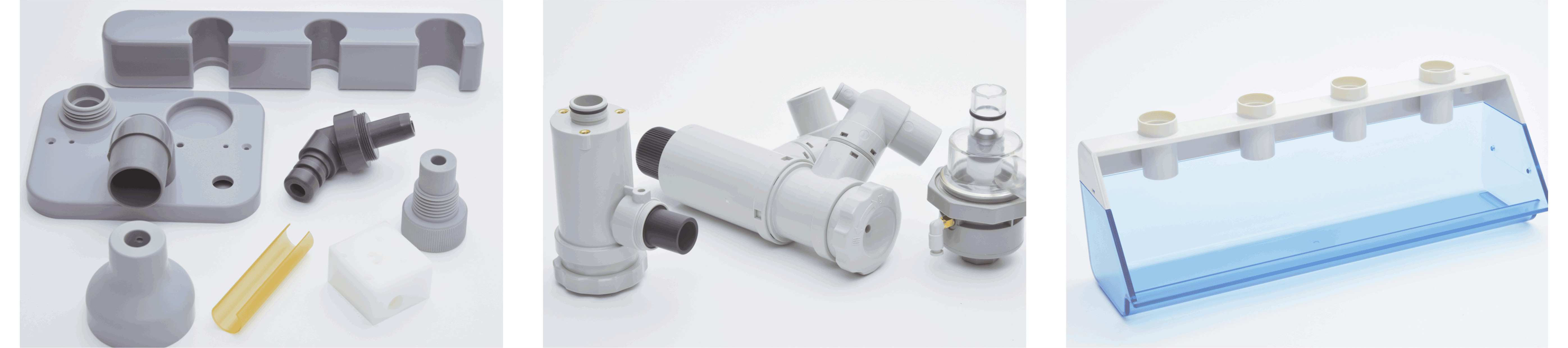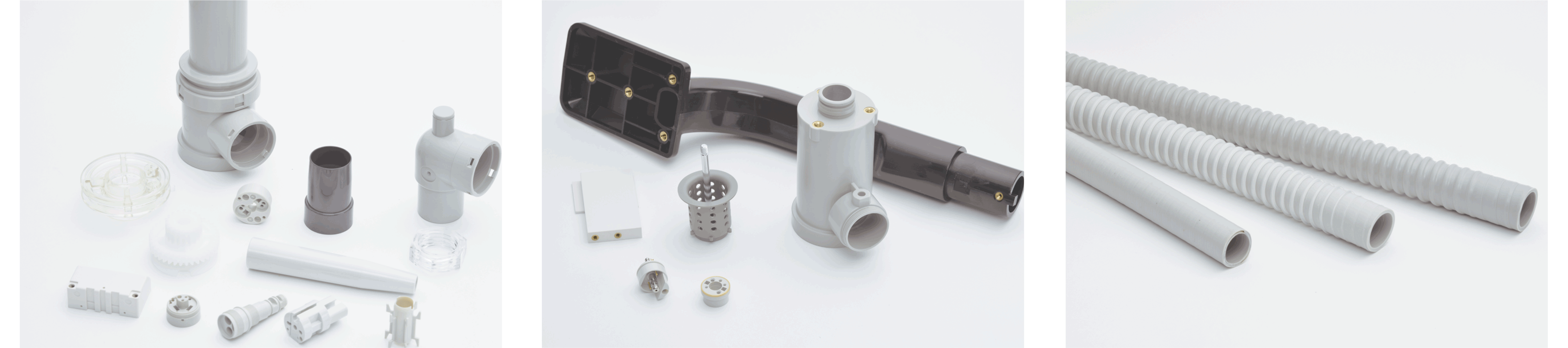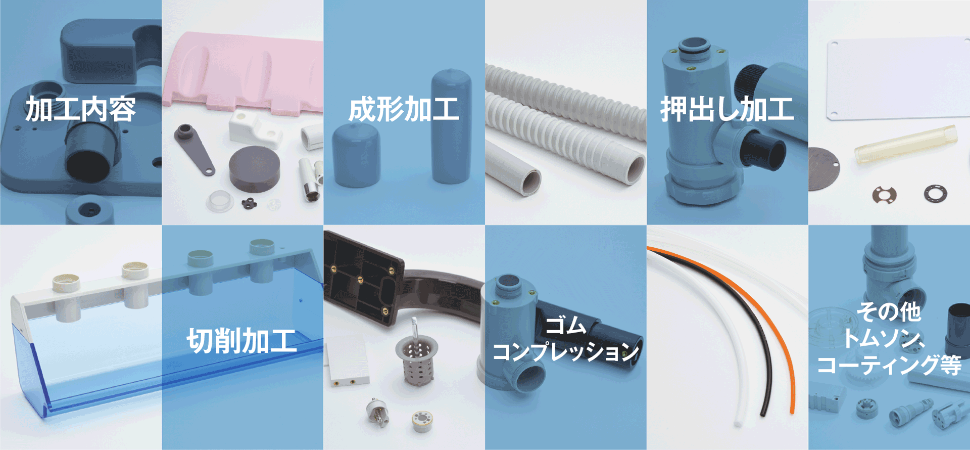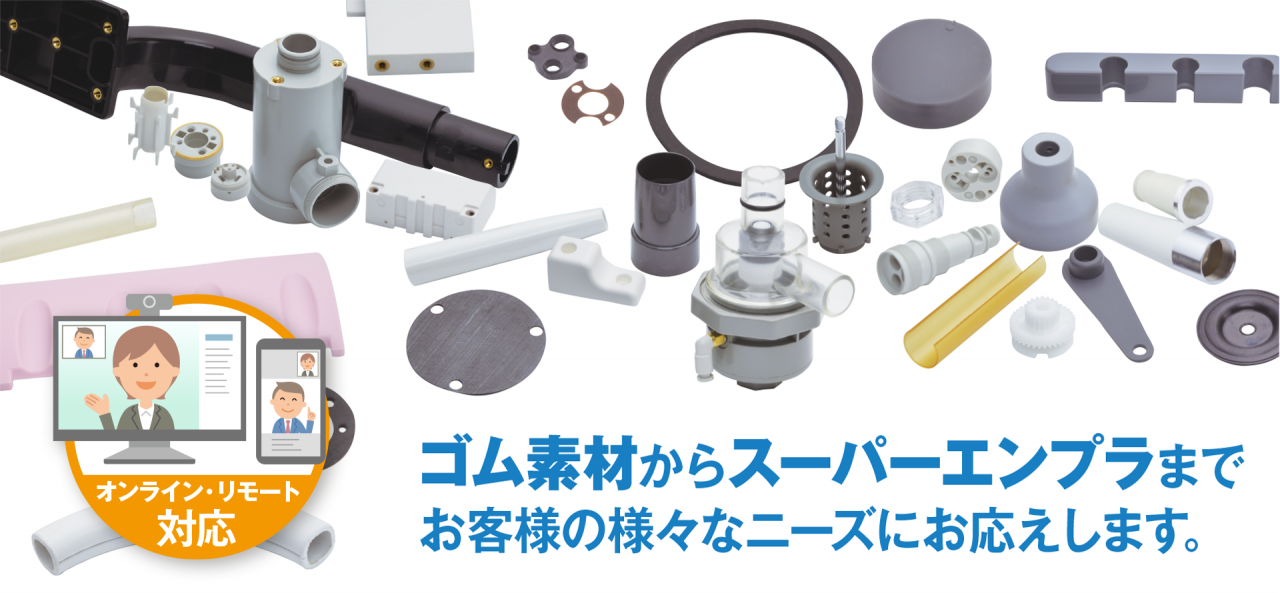 ゴム素材からスーパーエンプラまで、あらゆるの樹脂素材に対応し、切削加工、射出成形、真空成形及びチューブ類の押出し成形等、高精度の製品を短納期でご提供させて頂きます。