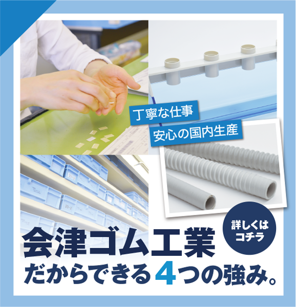 愛知県、名古屋でゴム成形やプラスチック加工・試作から量産までお考えの方「会津ゴム工業」へご相談下さい。小ロットでのご注文も対応します。
